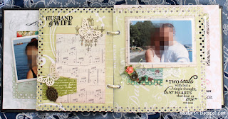 Второй разворот. Одна страница без фотографии, пусть молодожены сами вставят. У меня подходящей не было, а просить у них я не хотела, потому как это был сюрприз